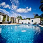 Piscina cercada de verde, perfeita para refrescar nos dias quentes, mergulhar ou apenas relaxar à beira d’água.